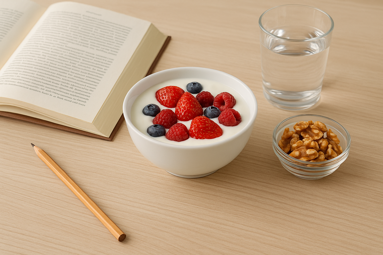 수험생 밥상은 복잡하지 않습니다. 아침에 요거트+베리+견과, 점심에 단백질+채소+현미, 간식은 과일·물, 저녁은 가볍게 단백질+채소를 지키면 됩니다. 오늘 장보기에서 단 한 가지라도 바꾸면 내일 집중력이 달라집니다.