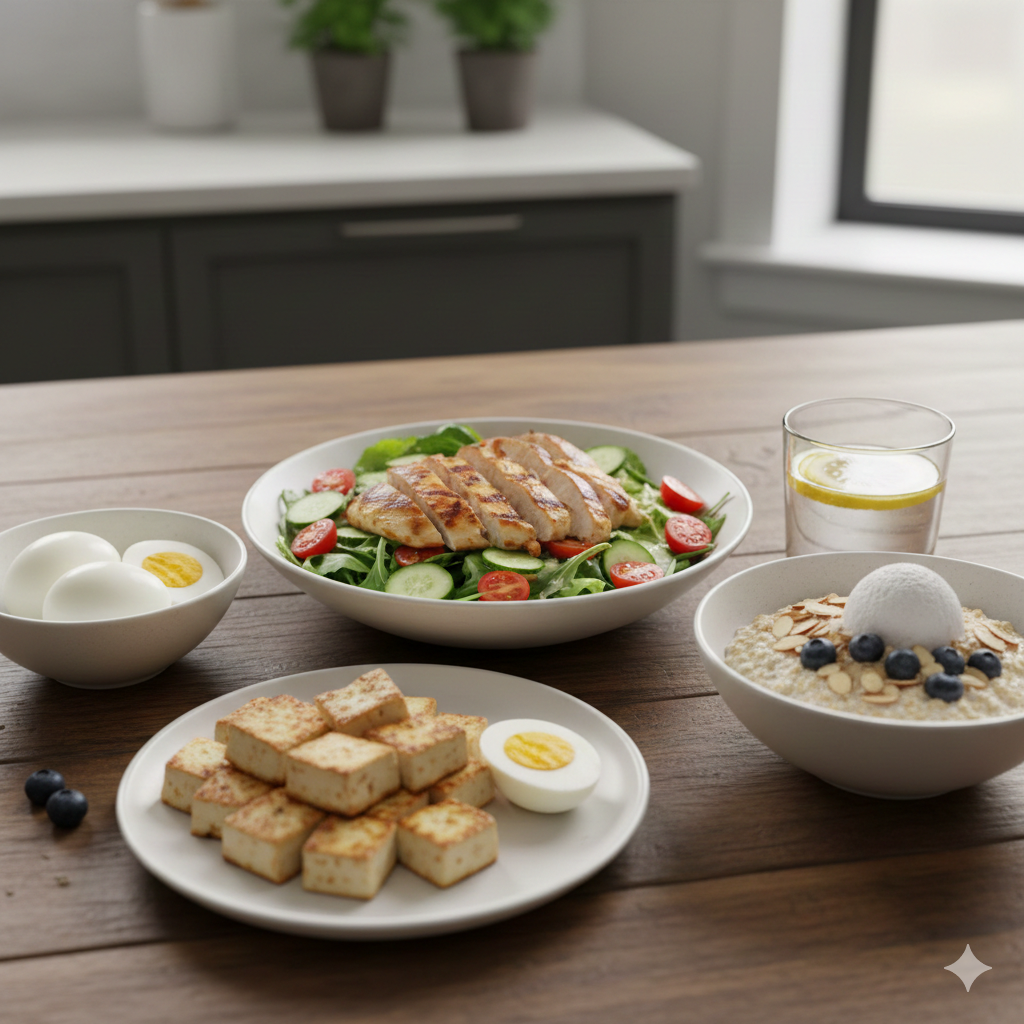 - ① 포만감 유지 — 단백질은 천천히 소화돼 배고픔을 줄여줍니다.