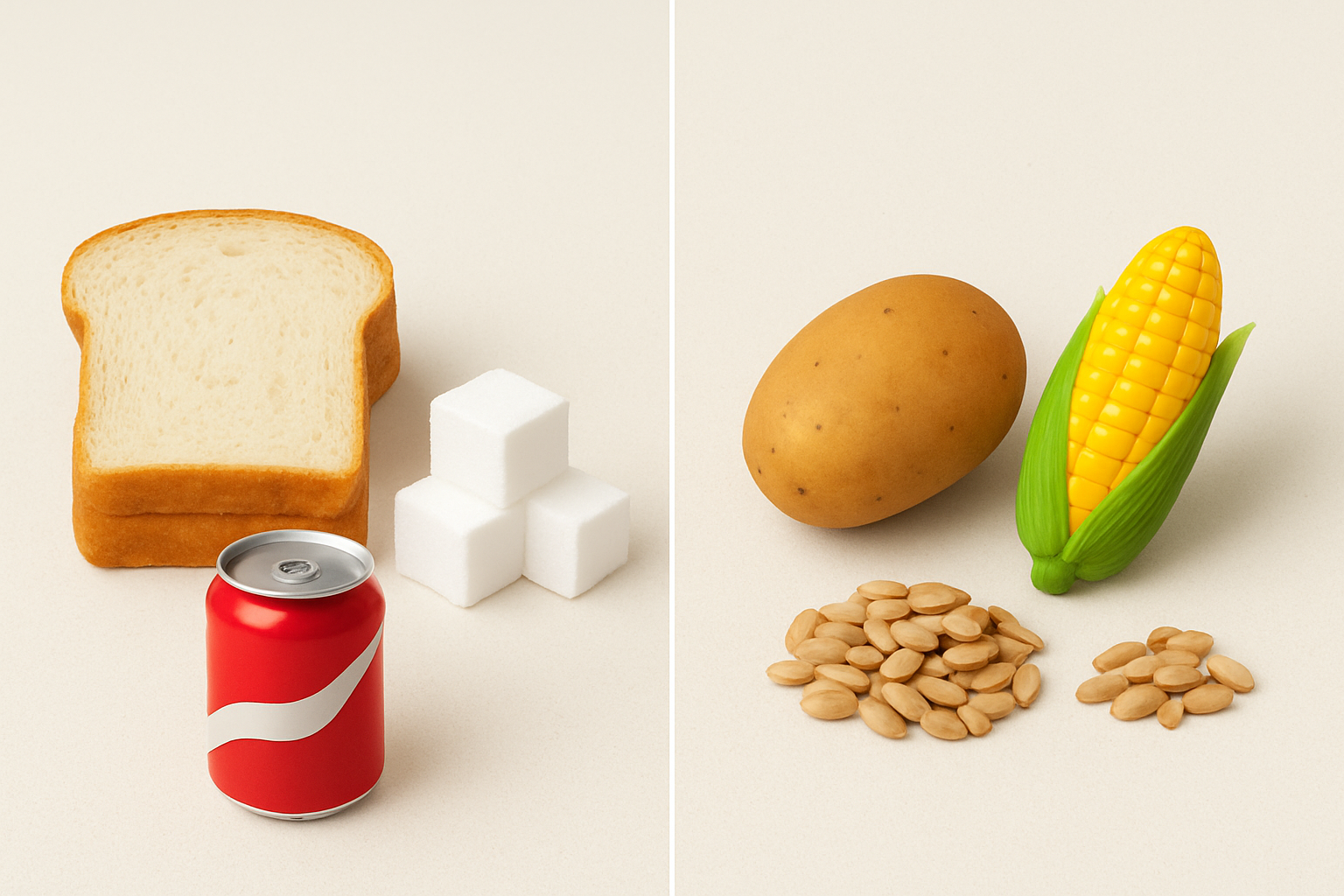 두 탄수화물은 단순히 구조적 차이만 있는 것이 아니라, 인체에 미치는 영향에서도 뚜렷한 차이를 보입니다.